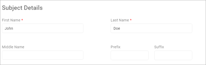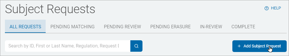 If users request for details on Personally Identifiable Information (PII) data types, use the New Subject Request screen to create a subject request. To create a new subject request: