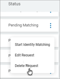 4. Click the more options menu next to the Pending Matching and then Delete Request.