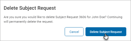 5. On the Delete Subject Request pop-up window, click Delete Subject Request to permanently delete the subject request or Cancel to discard.