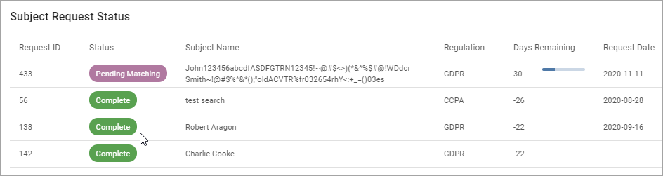 Subject Request Status:
