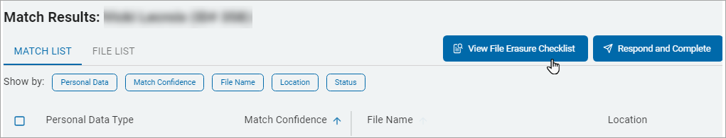 4. Click View File Erasure Checklist on the Match Results page.