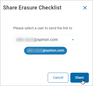6. On the Share Erasure Checklist, select a user to send the link.