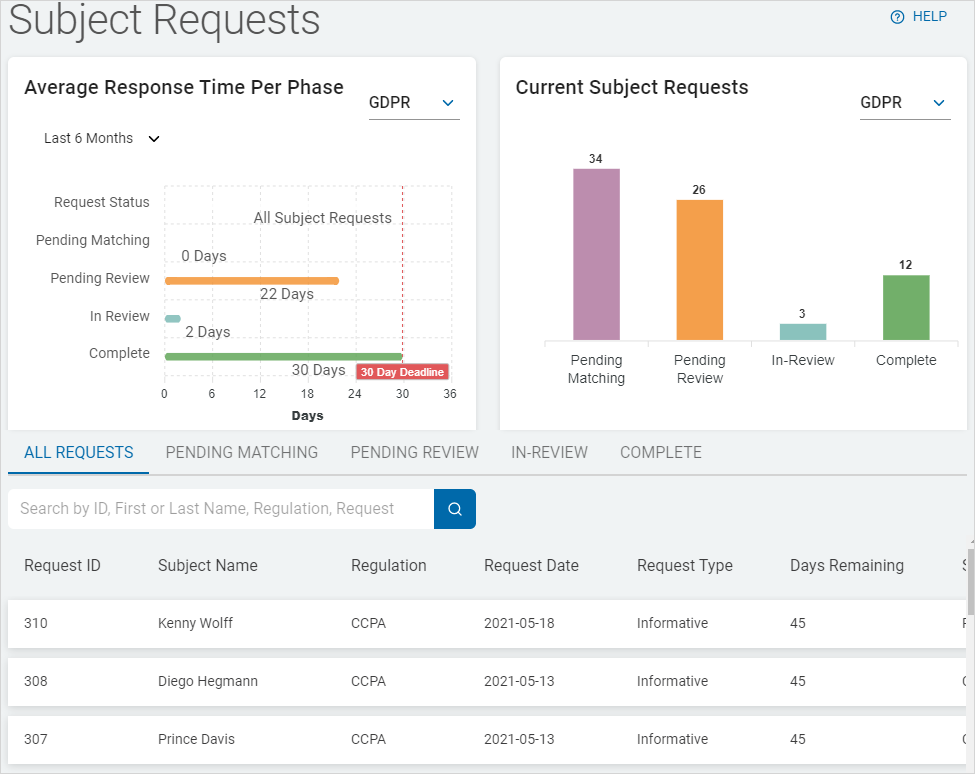 3. Subject Requests are displayed graphically and in a table.