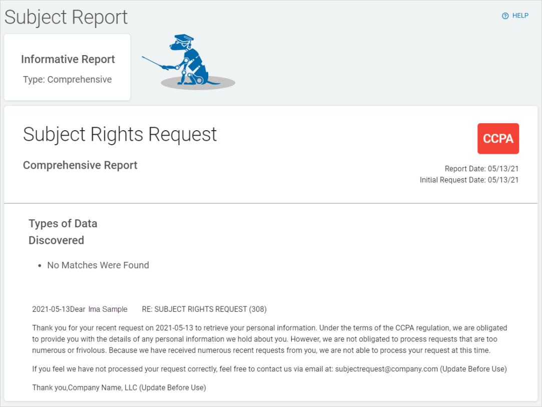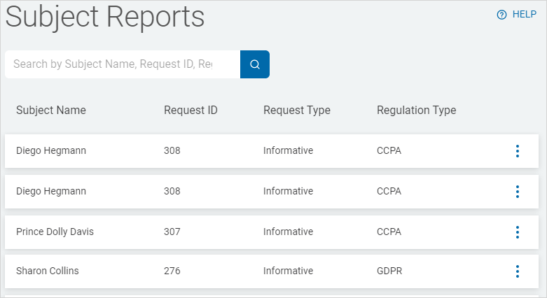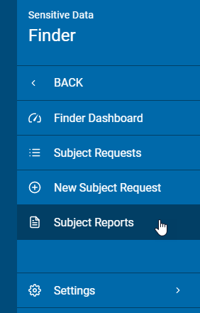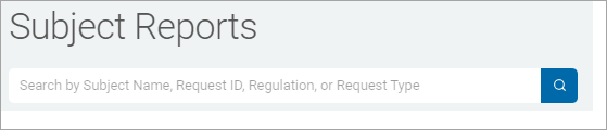 You can access all your data request reports on the Subject Reports screen. Reports can be searched, viewed, and exported as .csv and pdf format files. To access the Reports screen: