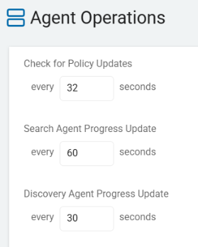 On the Agent Operations screen, set the time interval (in seconds) for the following: