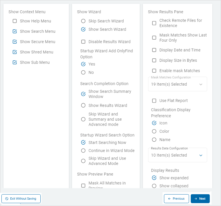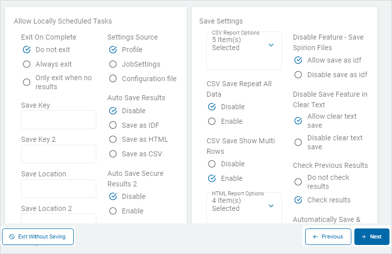 Click Next to proceed, Previous to return to the previous screen, or Exit Without Saving