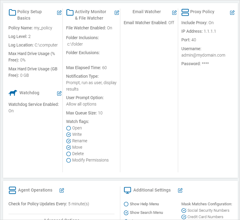 Policies govern how Agents, which are worker processes, scan and evaluate locations for sensitive data such as social security numbers and phone numbers.