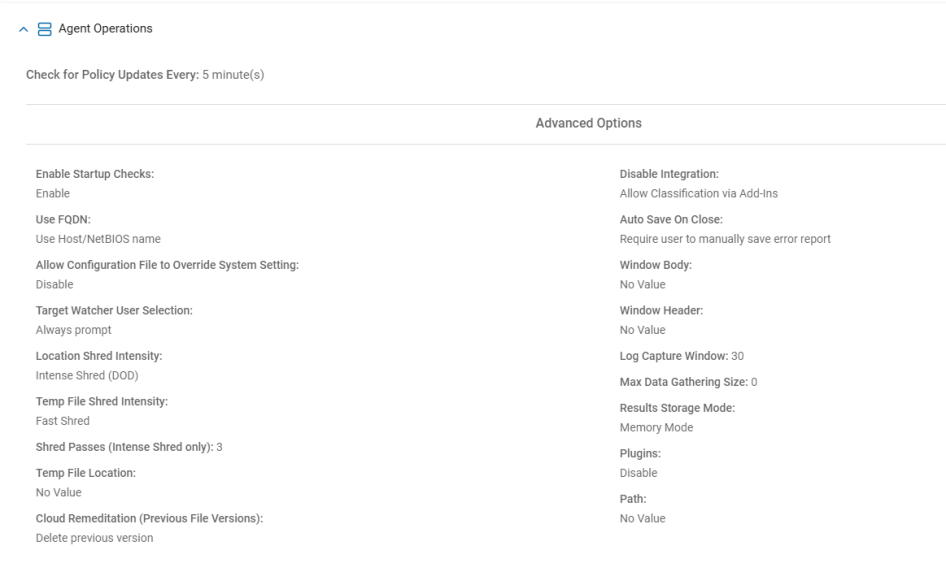 This setting controls the level of detail to log when an Agent acting upon a location (example: c:\private files\psswd\passwordstxt) such as scanning, remediation, etc. If an error is thrown when trying to scan a specific file, set one of the following log levels: