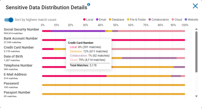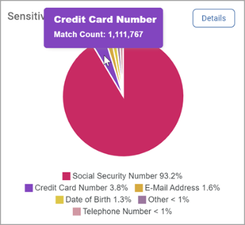 • Mouse over a section to view exact match count for the sensitive data type.