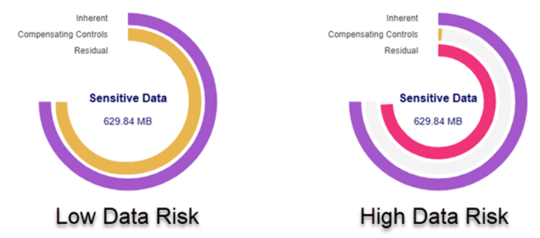 Below is an example of low organizational data risk vs. high organizational data risk as displayed by the Organizational Data Risk circle graph.