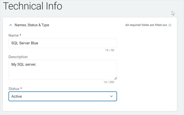 Name: Enter the name of the Asset. For example: SQL Server Blue.
