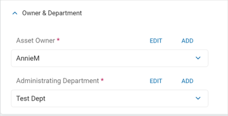 Asset Owner: Click an option from the drop-down list or click Add to add a new owner.