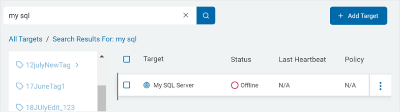 Target Name: Enter the target name. For example: My SQL Server.