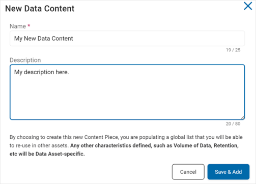 Name: Enter the name of the content. For example: My New Data Content.