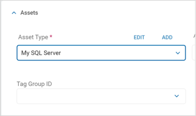 Asset Enter (required): Choose the asset type from the drop-down list. For example: My SQL Server.