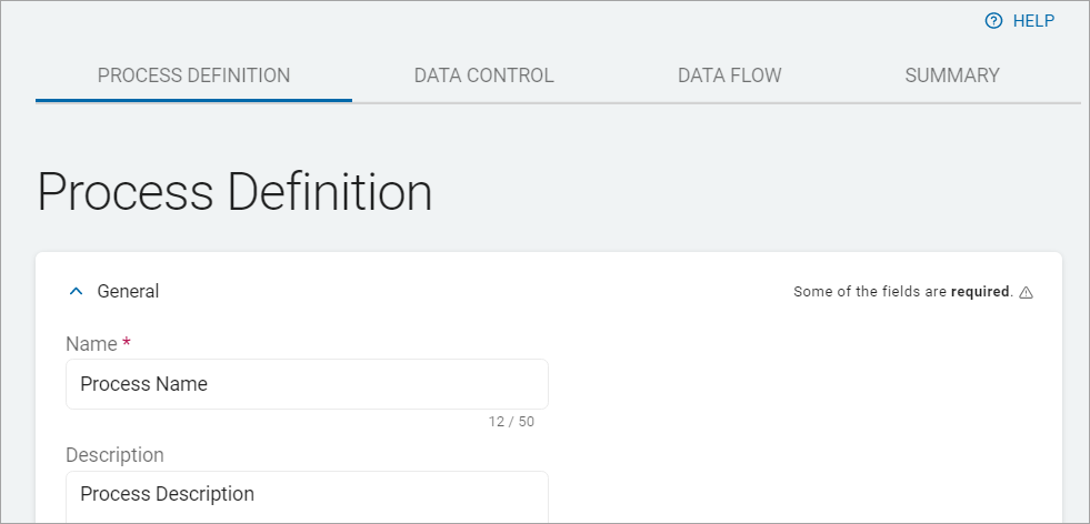 To add a General Process Definition, fill in the following: