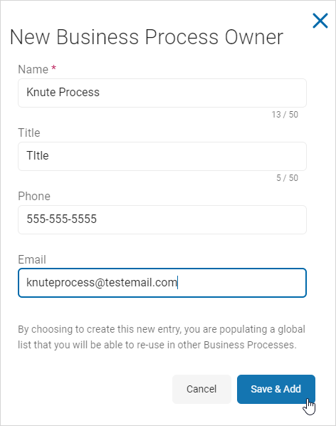 6. Add a new Business Process Owner:
