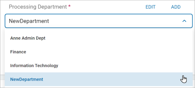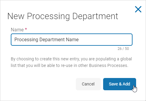 1. Add an existing Processing Department: