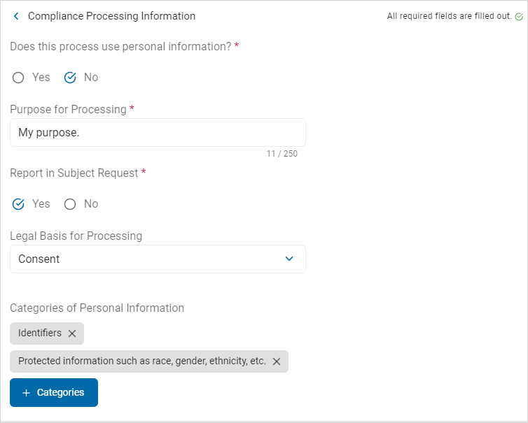 4. Legal Basis for Processing: Select an option from the drop-down list.