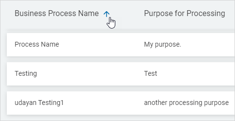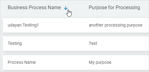 Business Processes are displayed in a list sorted by: