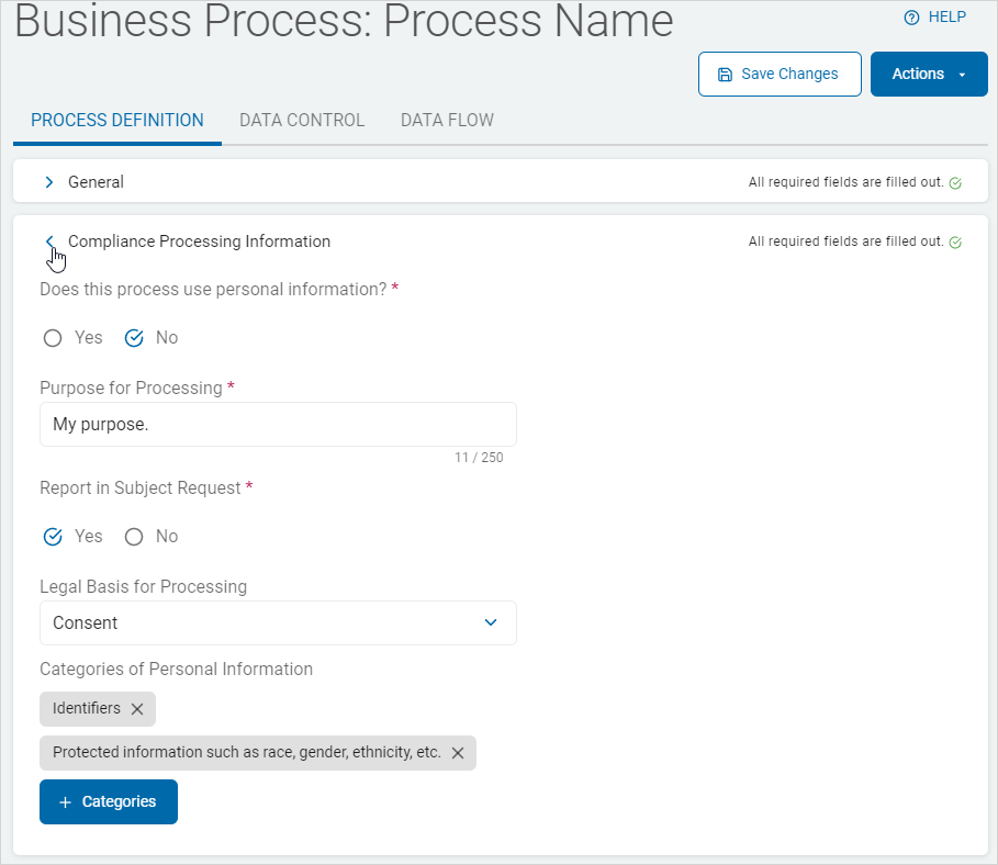 2. Purpose for Processing: Process purpose. (maximum 250 characters)