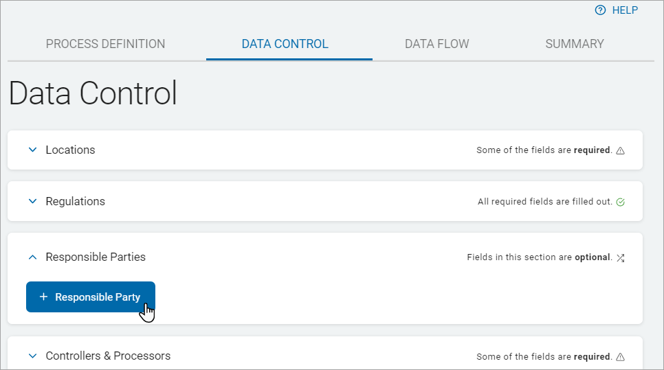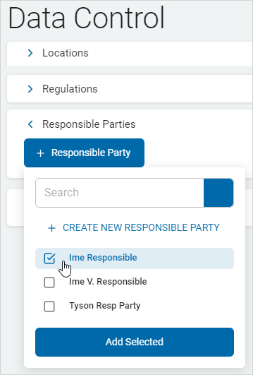 8. The new responsible party is added to the Responsible Parties section.