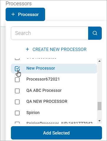 2. Click Create New Processor.