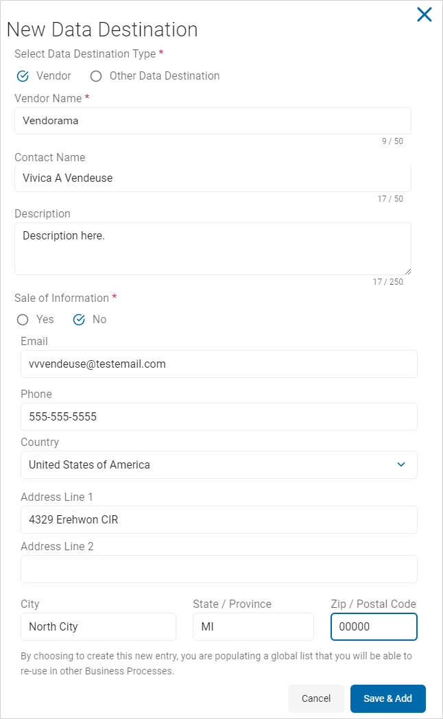 8. Click Save & Add to add new destination or Cancel to discard.