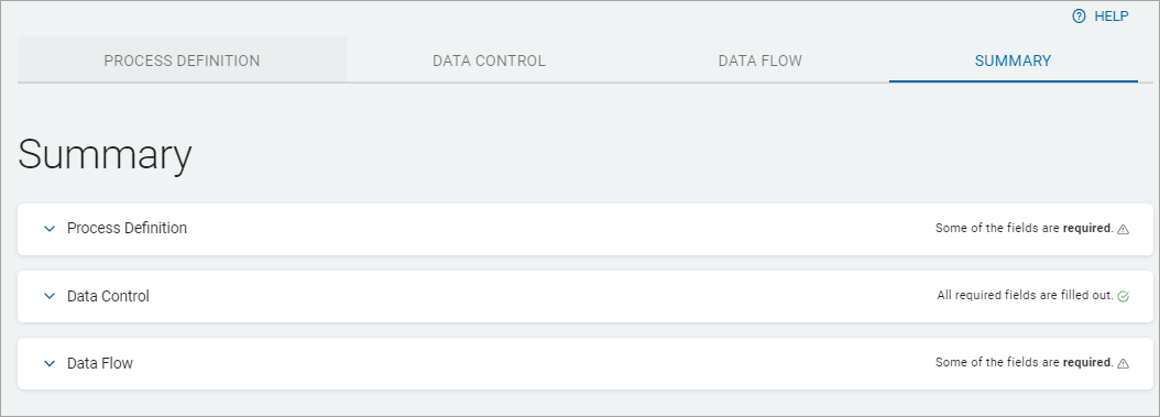 4. Click a tab to return to a section. For example: Process Definition tab, Processing Department.