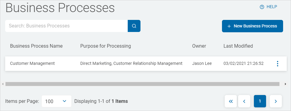 The Business Processes screen is where you can view and manage your business processes.