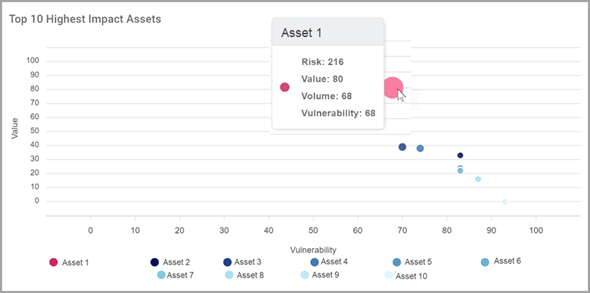 Assets on the graph positioned highest and furthest to the right are the most vulnerable, highest-risk assets that require Remediation