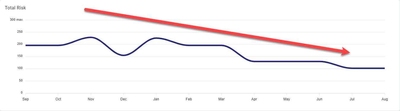Total Risk over time in your organization should trend down, as shown in graph below: