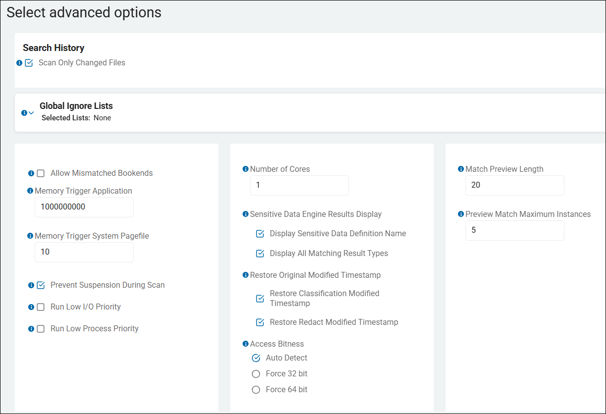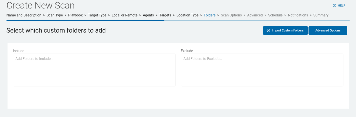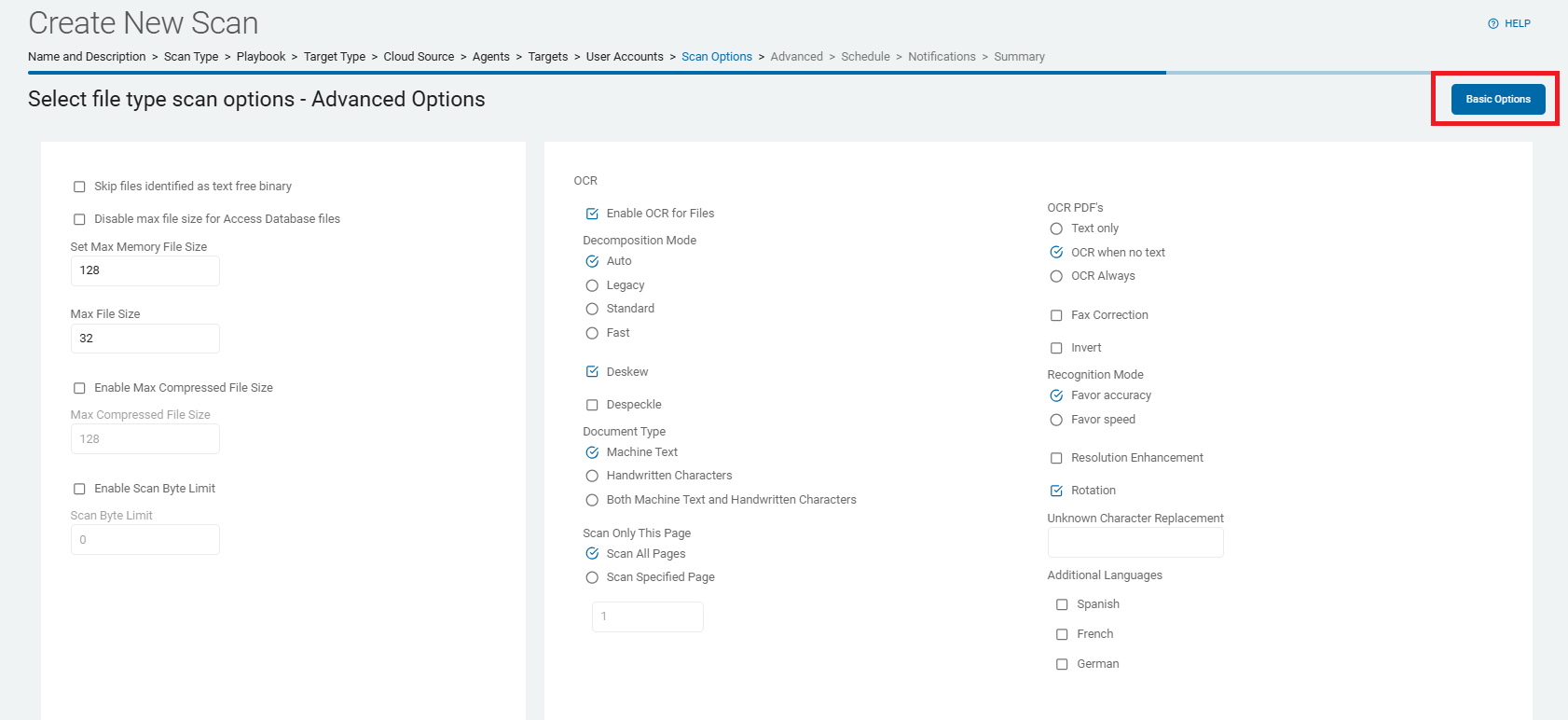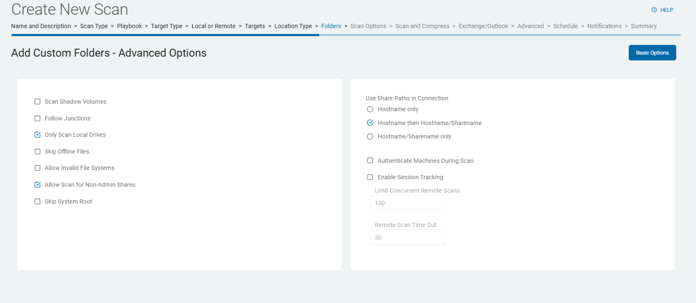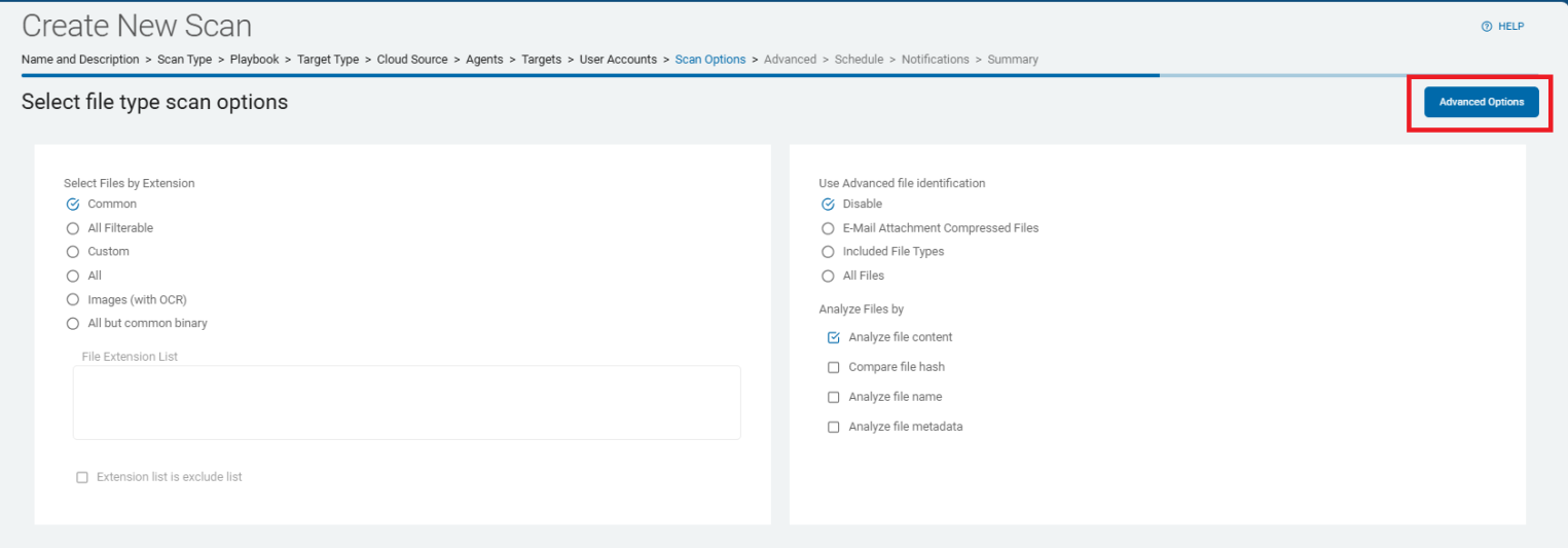 • When you create a new scan, approximately the 11th step in the step-by-step wizard is the page Select advanced options.