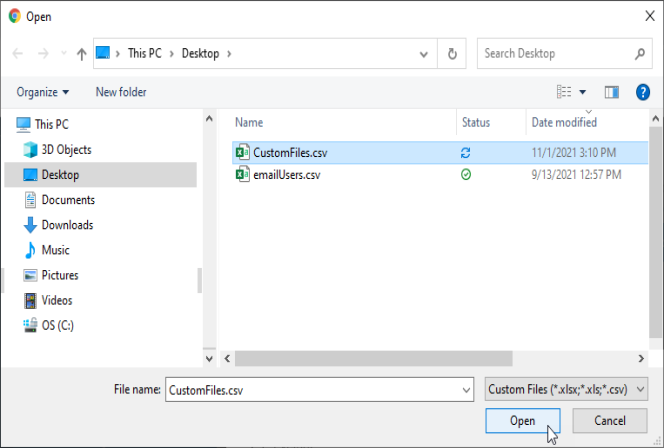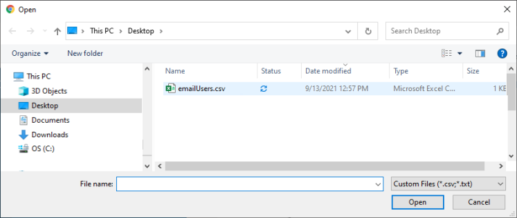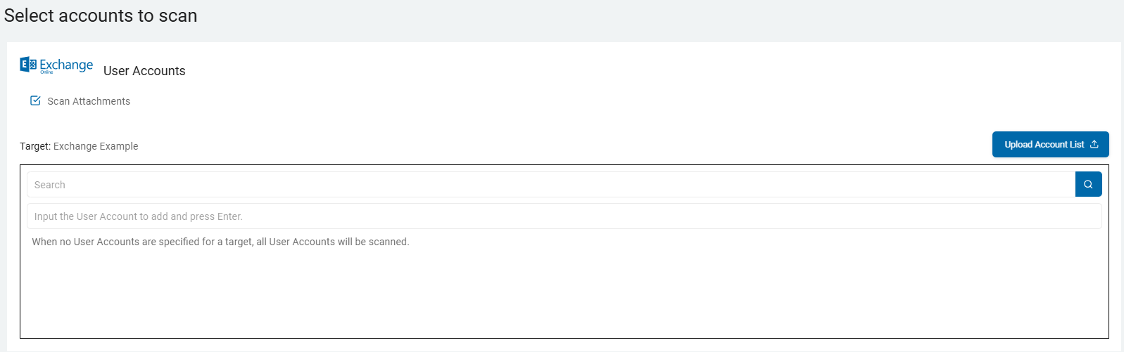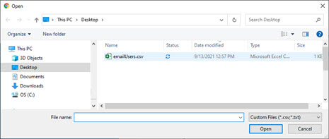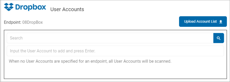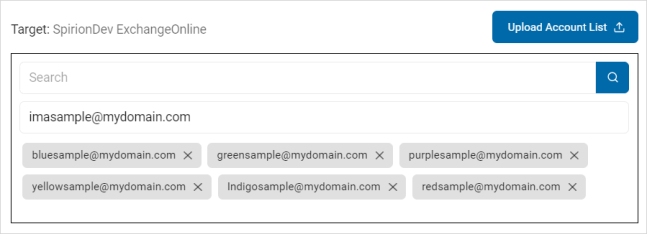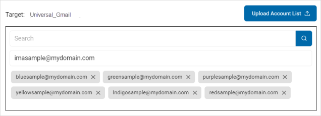 • Upload Account List: To upload a list of accounts from your local computer, click the upload icon and locate the file on your local computer.