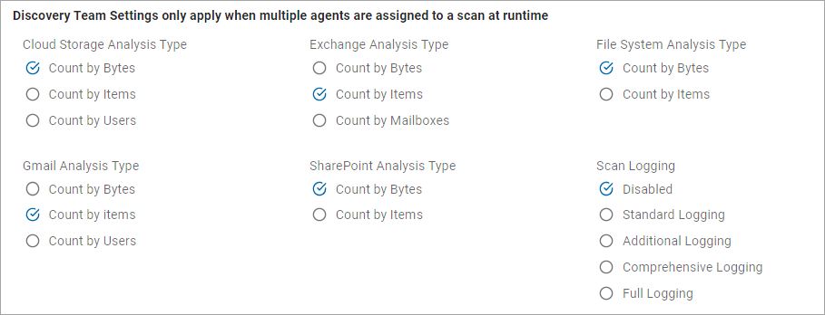 2. On the Select Discovery Team settings screen, choose the options to use.