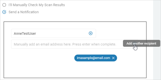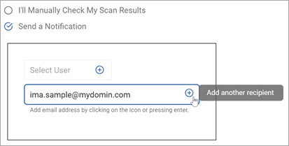 6. To add additional email addresses, click the plus (+) icon and type the addresses in the entry field.