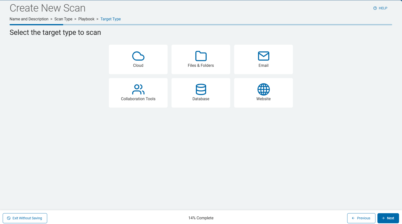 3. On the Select what type of scan to create screen, click Sensitive Data Scan. Select Next.