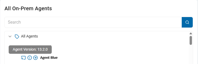 7. To check the version of an agent, hover your mouse over the information icon to determine the version of the Agent.