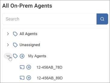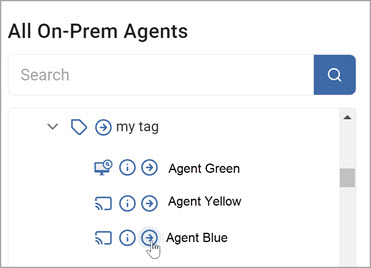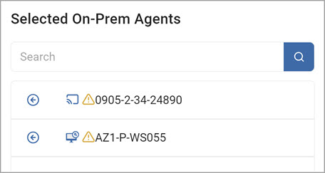 5. To move an agent from the Selected On-Prem Agents list back to the All On-Prem Agents list, click the arrow next to the agent name.