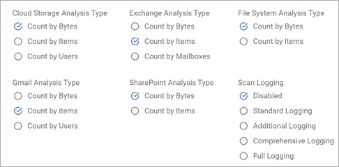 • Sensitive Data Scans enable you to search for specific data types (social security numbers, telephone numbers, etc.) within files and folders at different locations (and take actions on them based on the playbook rule defined for them)