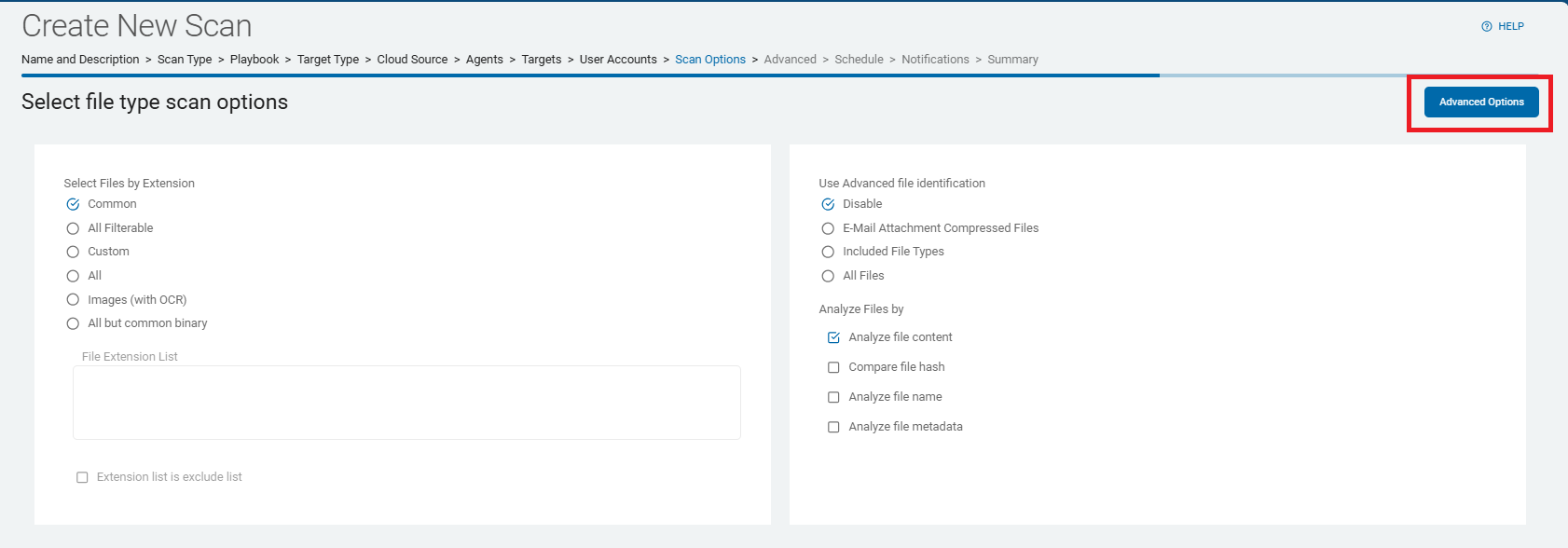 3. On the Select file type scan options - Advanced Options screen, select options.