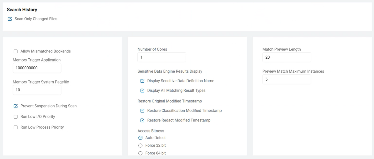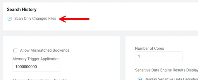 • Under Search History is the option Scan Only Changed Files