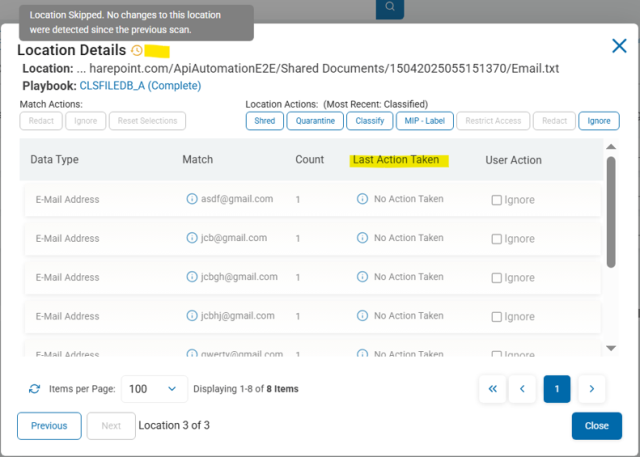 • Spirion Sensitive Data Platform did not detect any changes to these locations since the last scan.