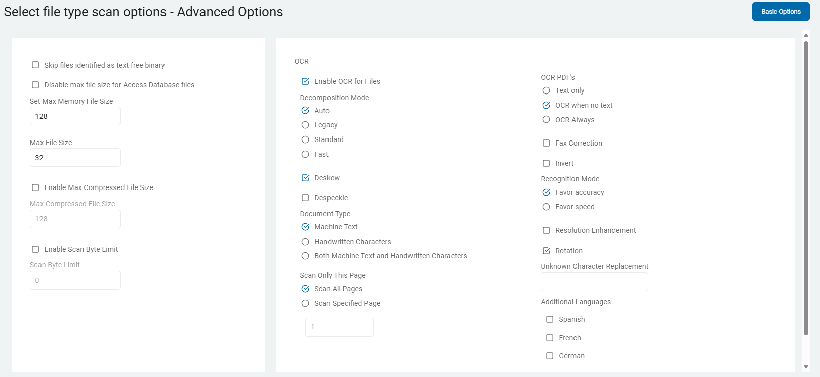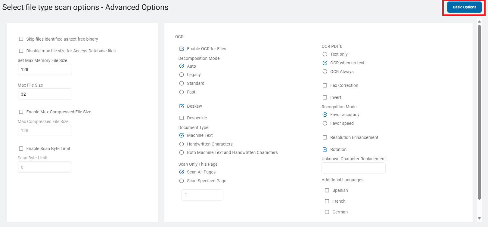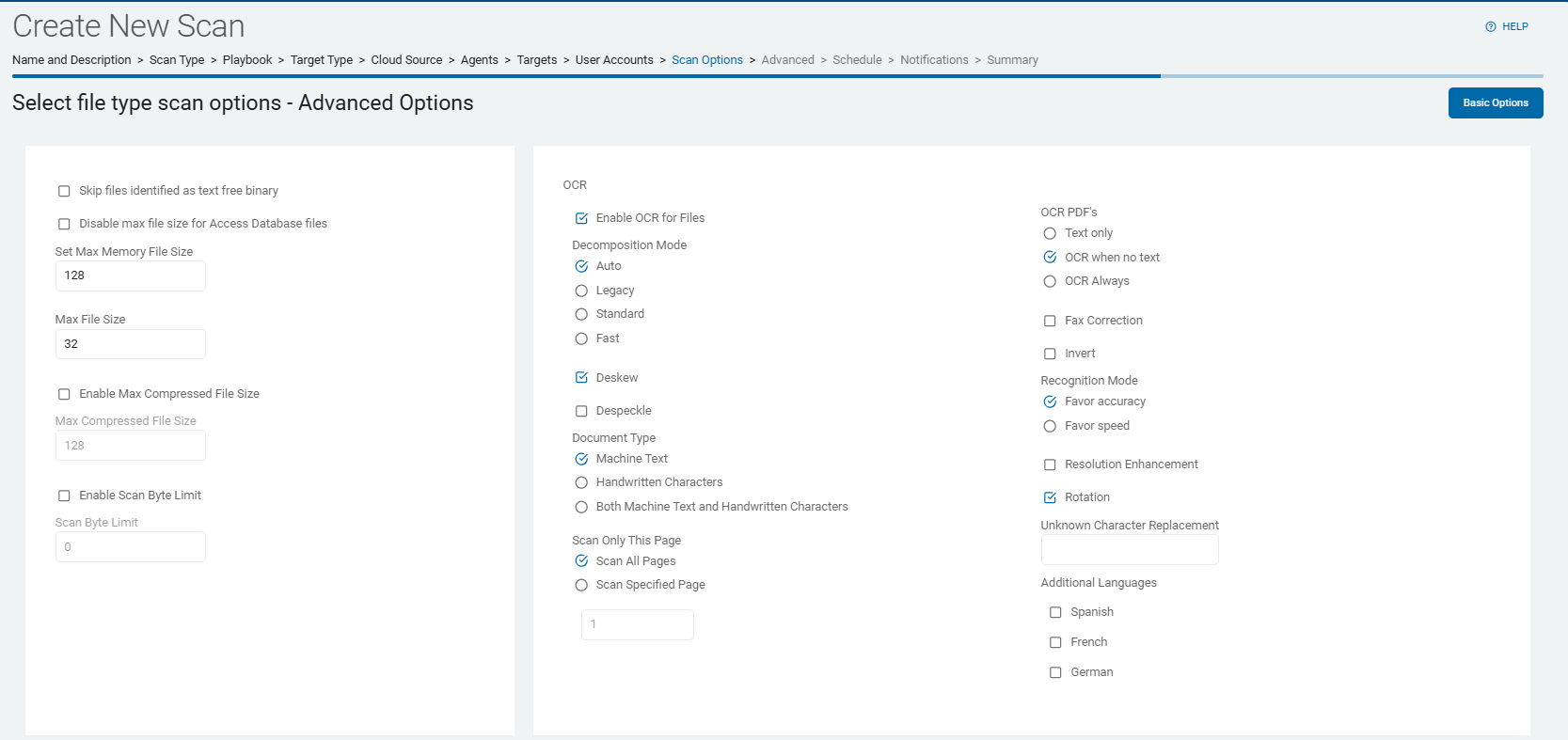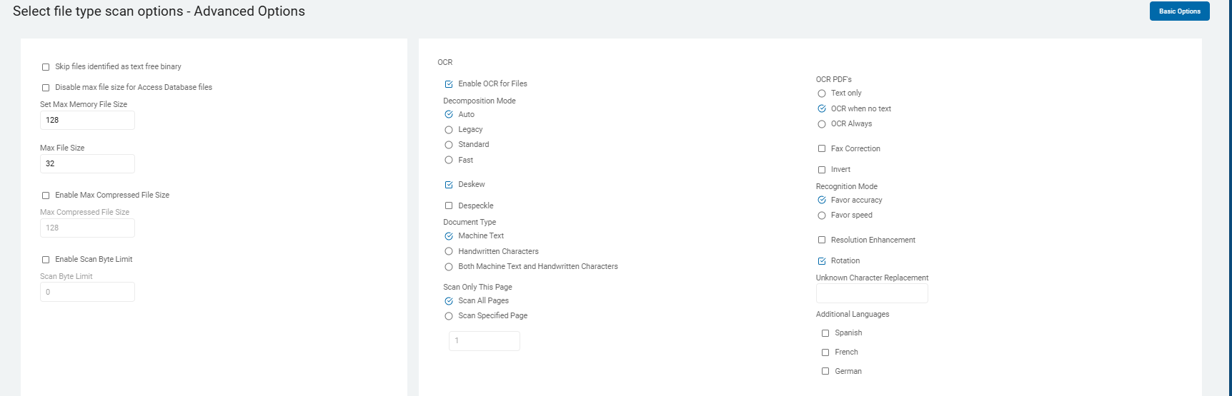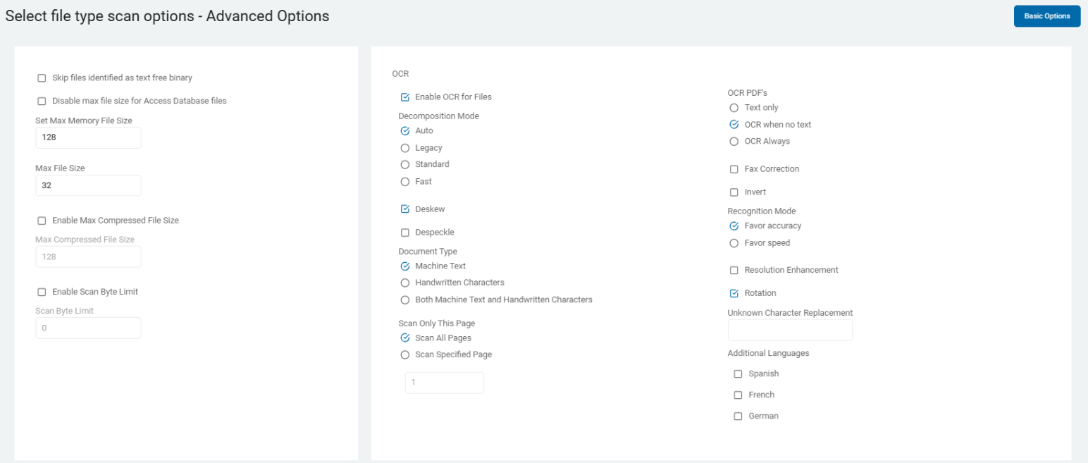 2. On the Select file type scan options screen are additional Basic Options.