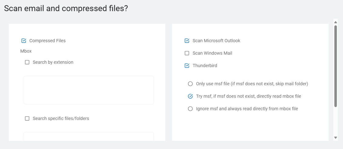 2. On the Select File Type Scan Options screen, select options.