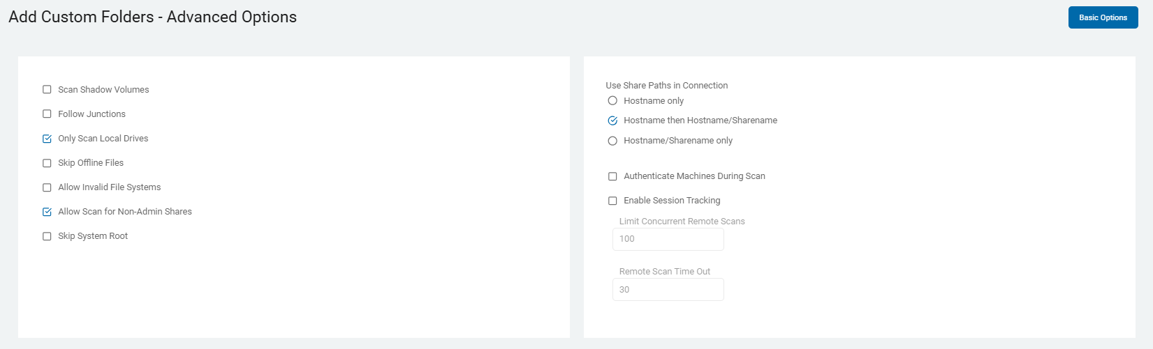 These options are described in Scan Options.