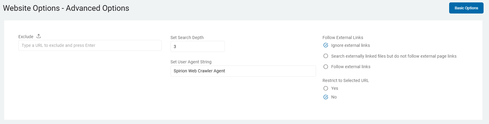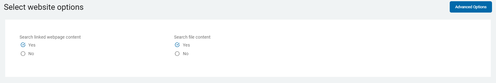 3. On the Website Options - Advanced Options screen, enter values, if applicable: