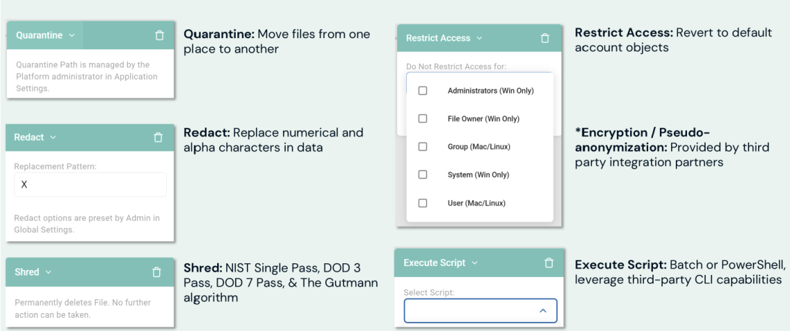 Recall that once you have identified the sources you wish to scan for sensitive data, added and configured them to Sensitive Data Platform, you next create decision trees (Playbooks) that Sensitive Data Platform uses to act upon the sensitive data it finds.