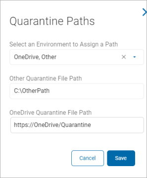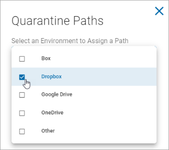 - In the Quarantine Paths pop-up window, select one or more options from the drop-down list.