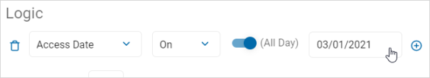 Right criteria drop-down list: Fill in as applicable. For example: 03/01/2021.